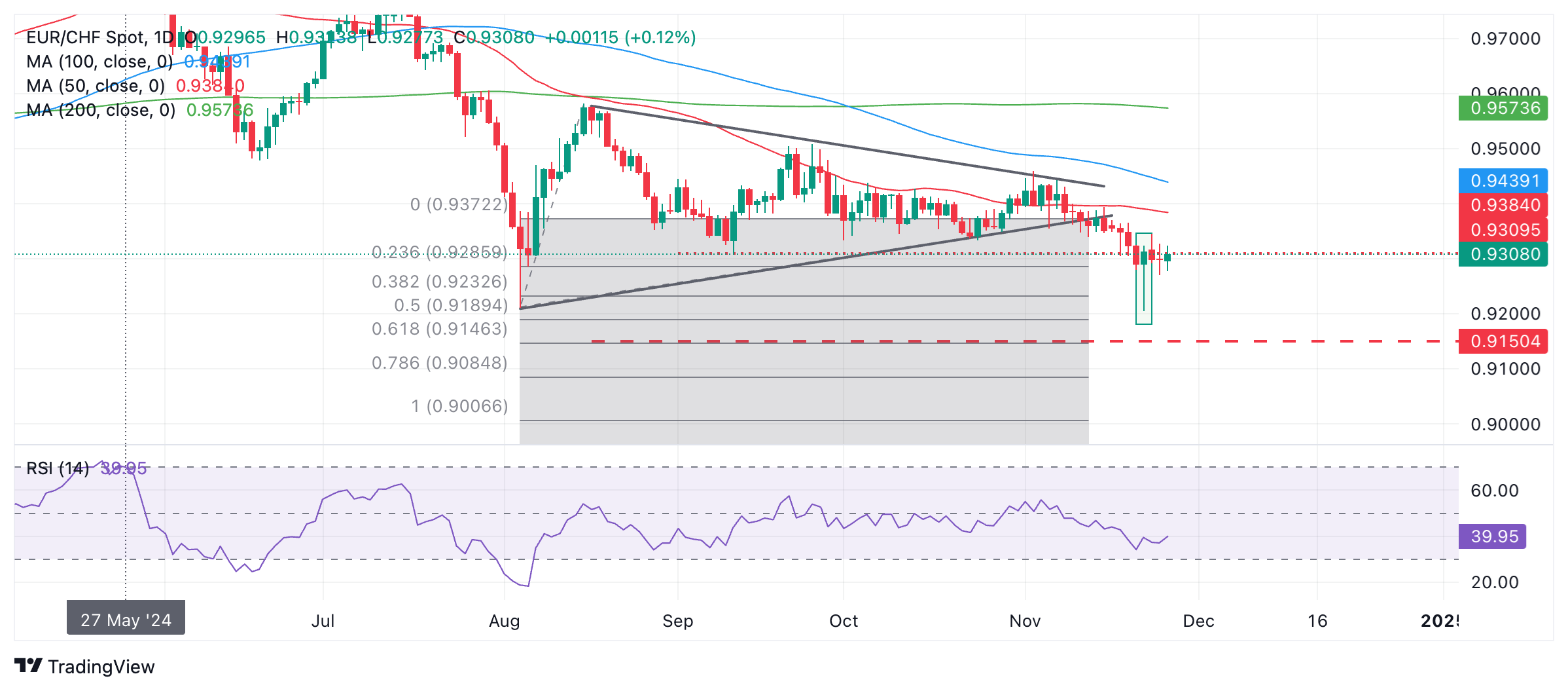 欧元/瑞郎价格预测:侭管出现锤形阳缐,但仍有进一步看向下行目标的风险