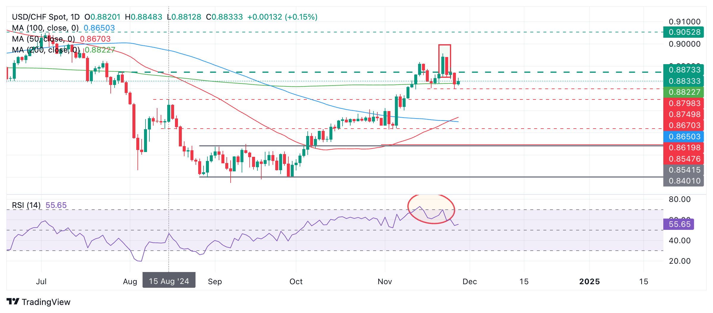 如果是这样,突破至 11 月 22 日高点 0.8958 的上方,可能会确认持续上涨至下一个目标位 0.9000(整数位和心理区域),然后是 0.9050(7 月 2 日震盪高点)。