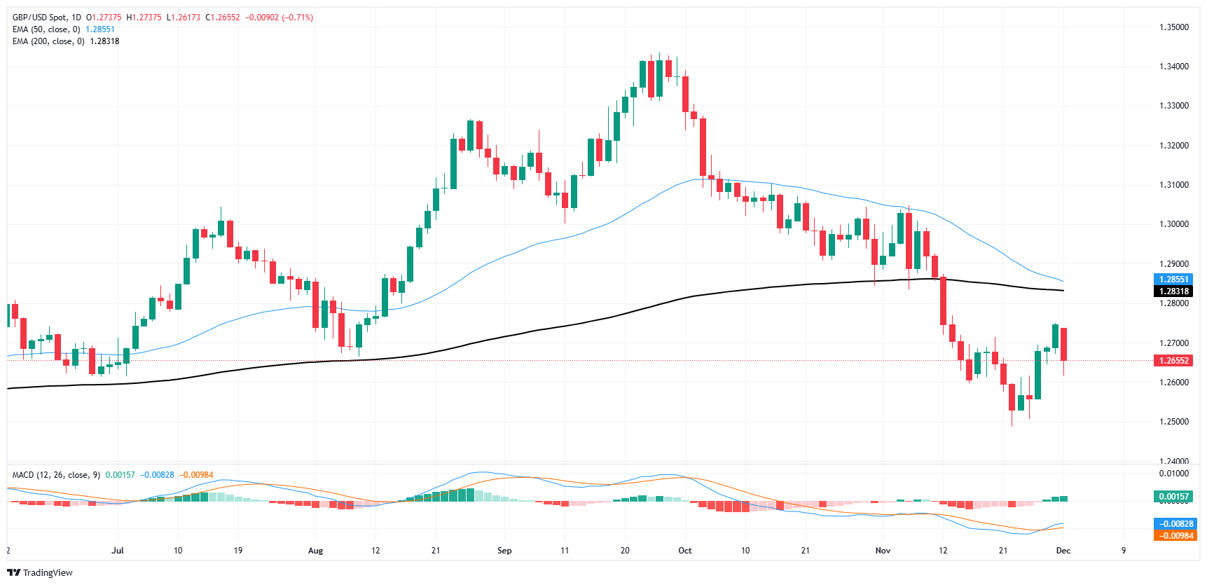 - 英镑/美元周一下跌 0.7%,重回 1.2700 下方。