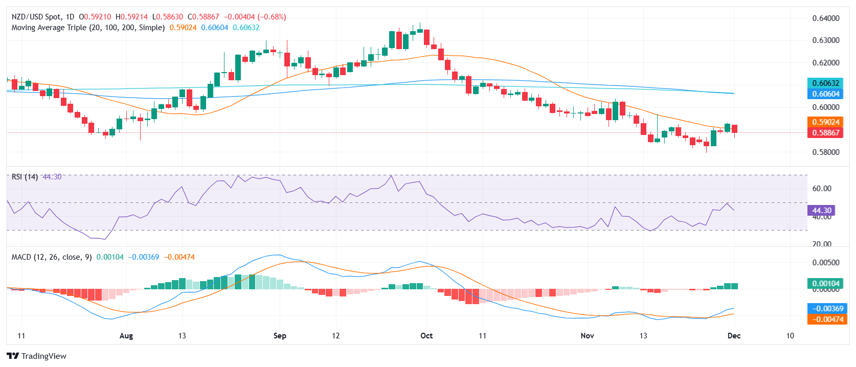 纽元/美元价格分析:继跌破 20 日均缐多头停滞,看涨倾向面临风险