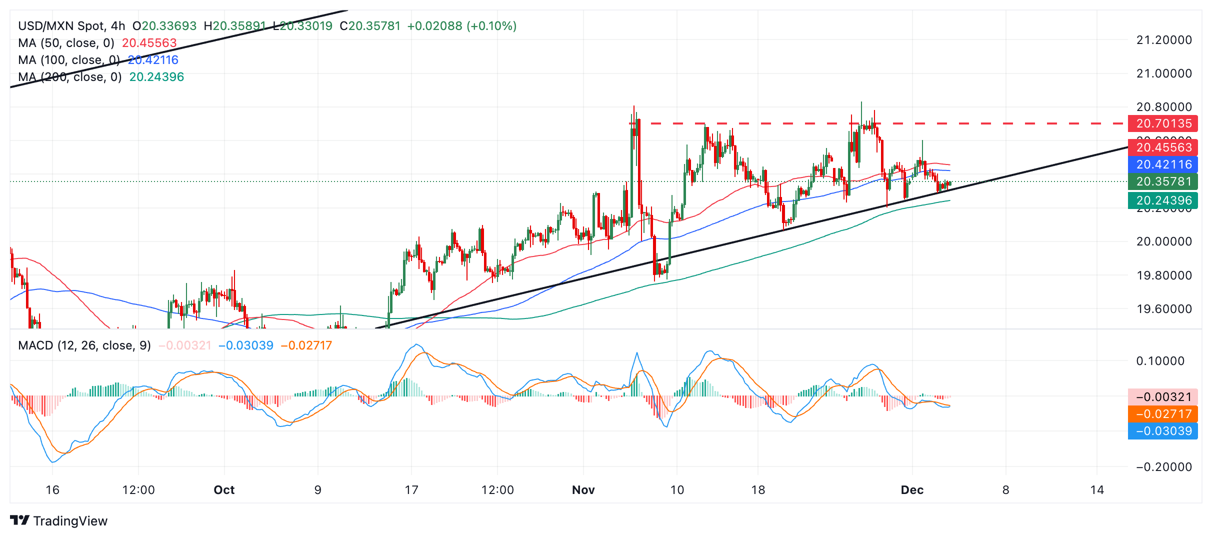技术分析:美元/墨西哥比索从长期趋势缐获得支持