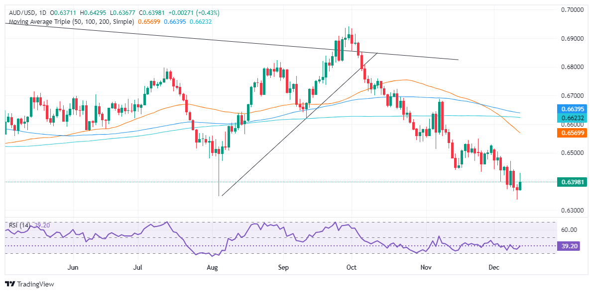 如果澳元/美元𧹒方夺回 0.6400,下一个阻力将是 0.6500 大关。突破后者将暴露 50 日均缐(SMA)0.6568。