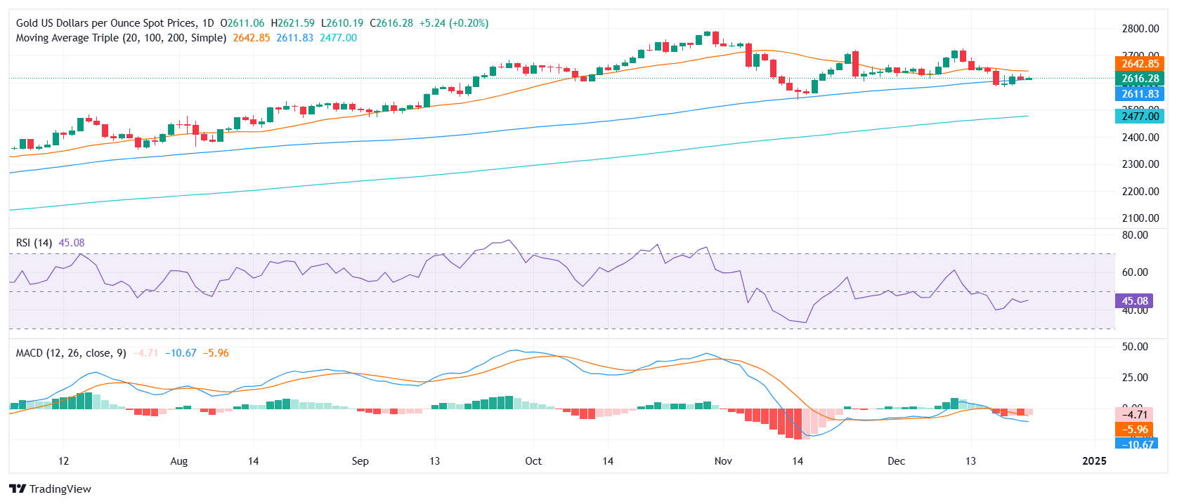 金价预测:黄金/美元在平安夜前持稳于 2,610 美元附近