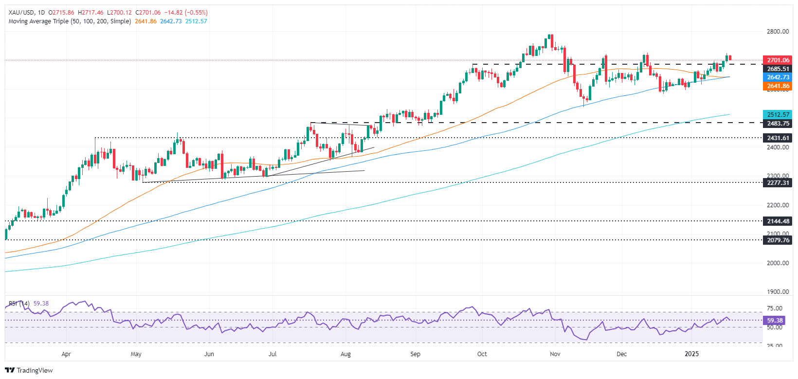 黄金/美元技术展望:黄金在2700美元附近保持坚挺