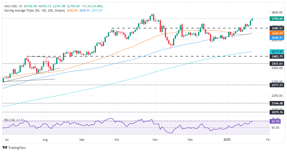黄金/美元技术展望:金价突破2750美元,多头瞄准历史高点