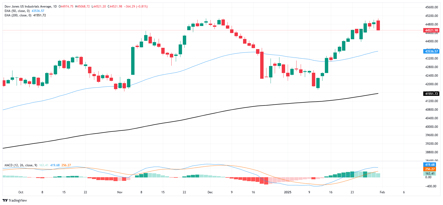 道琼斯指数周五的看跌价格走势将出价压回至44,800以下,削弱了重新收复45,000以上纪录高点的机会。主要股指目前正在测试44,600区域,道琼斯工业平均指数最近的牛市似乎正在消退