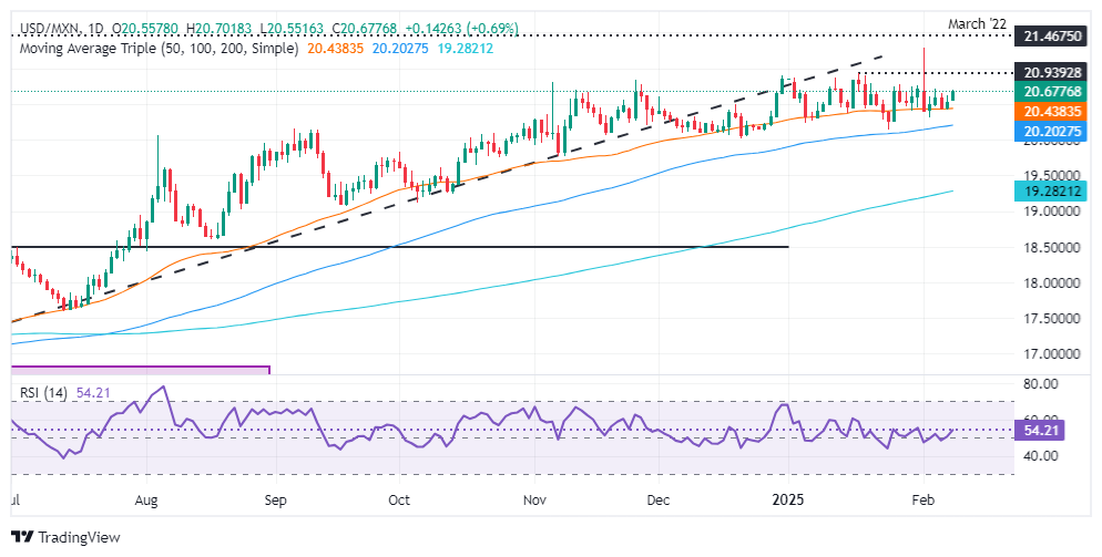 在美国总统唐纳德·特朗普决定对包括墨西哥和加拿大在内的铝和钢铁进口征收25%关税后,墨西哥比索在周一对美元贬值。截至发稿时,美元/墨西哥比索交易于20.67,涨幅為0.66%。