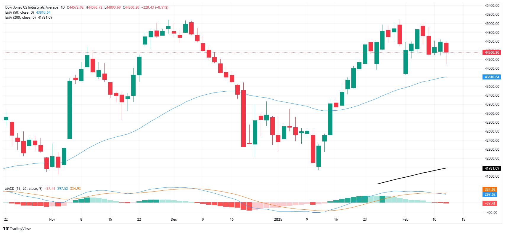 道琼斯工业平均指数(DJIA)周三暴跌,最低下跌超过400点,跌至44,090点。该主要股指随后有所回升,但当天仍下跌约230点。美国消费者物价指数(CPI)通胀显示,美国在八个月内未能降低核心通胀指标后,投资者情绪受到打击。自美国年化核心CPI低于3.0%以来,已近四年。