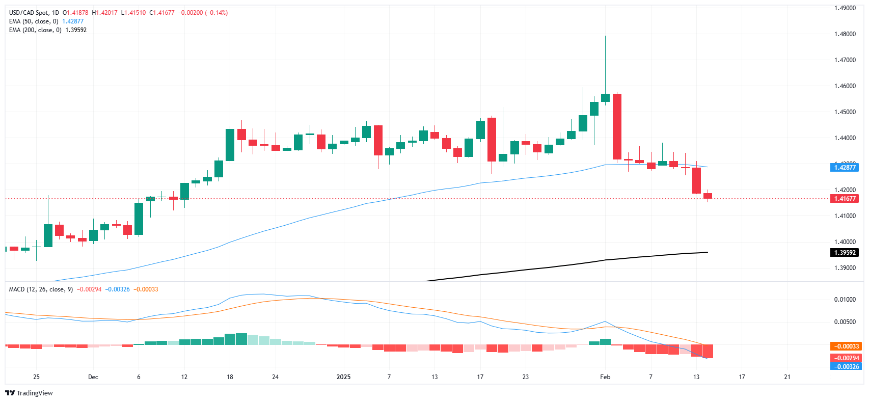 - 加元兑美元上涨0.15%,推动美元/加元进一步跌破1.4200。