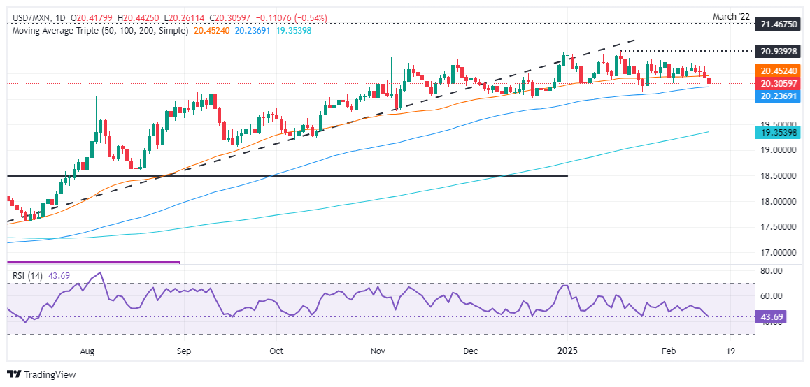 墨西哥比索(MXN)周五延续涨势,有望以超过1%的涨幅结束本周。糟糕的零售销售报告使美元(USD)跌至年内新低,如美元指数(DXY)所示。美元/墨西哥比索(USD/MXN)报20.32,下跌0.39%。