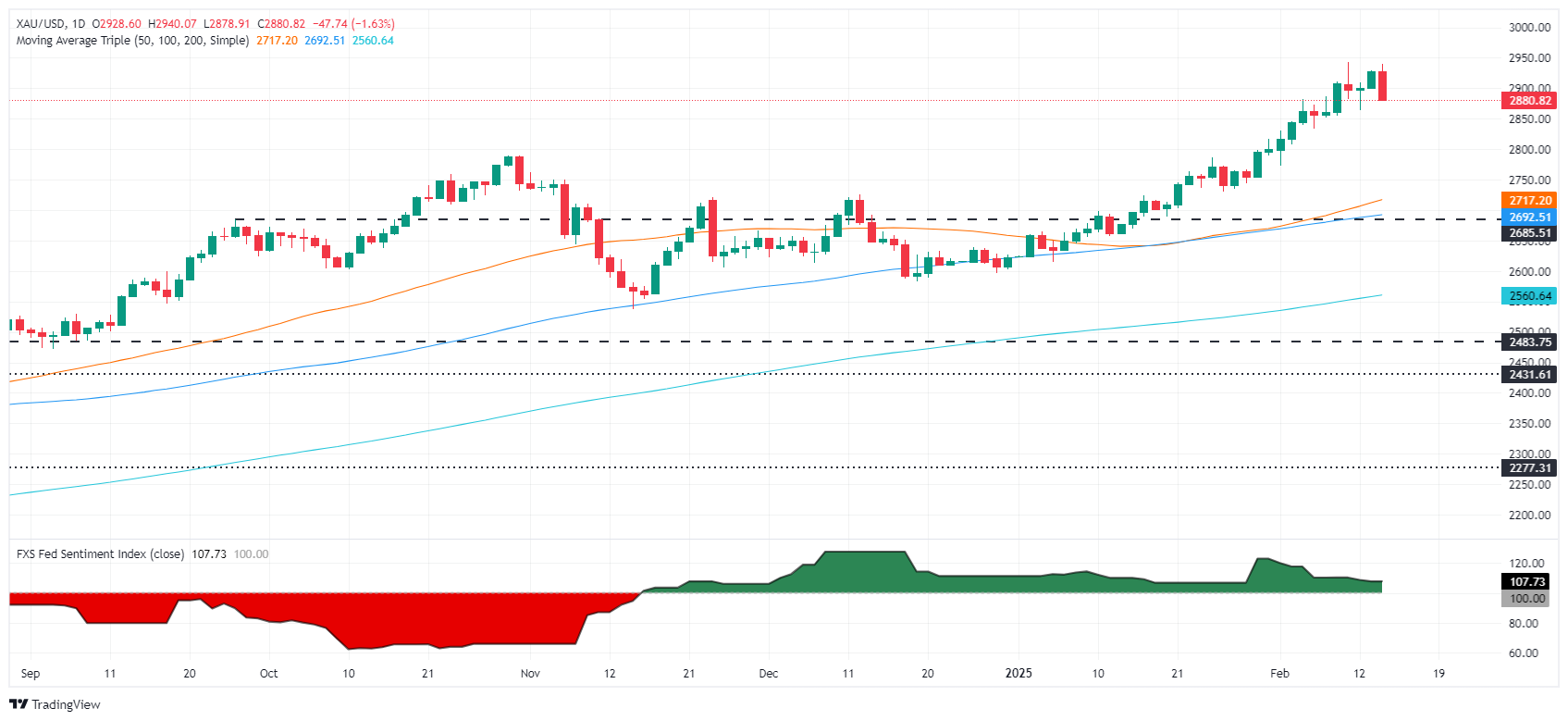 金价上行趋势保持不变,侭管回撤并触及两日低点2878美元。需要指出的是,相对强弱指数(RSI)在2月份大部分时间处于超𧹒区域后退出。因此,如果𧹒家守住2月12日的日低2864美元,XAU/USD的下跌可能会停止。