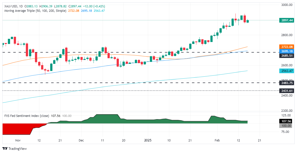 相反,黄金/美元日缐收盘低于2900美元可能会為挑𢧐2月14日的低点2877美元铺平道路,随后是2月12日的低点2864美元。如果进一步走弱,黄金可能会跌至测试10月31日的高点2790美元。