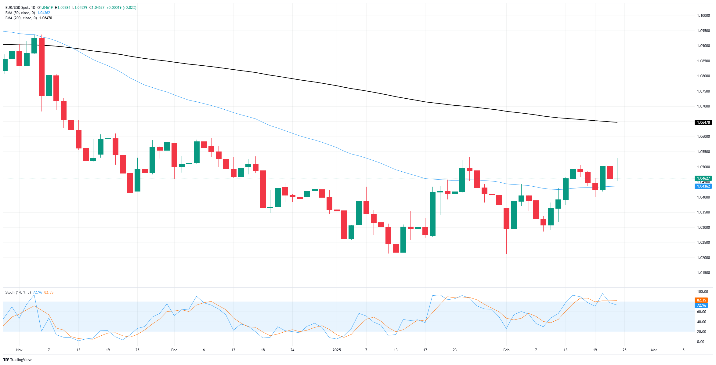 周一,欧元/美元在熟悉的区域内波动,测试1.0500关口,但未能取得任何实质性进展,因為该货币对仍在近期整合的上端附近徘徊。