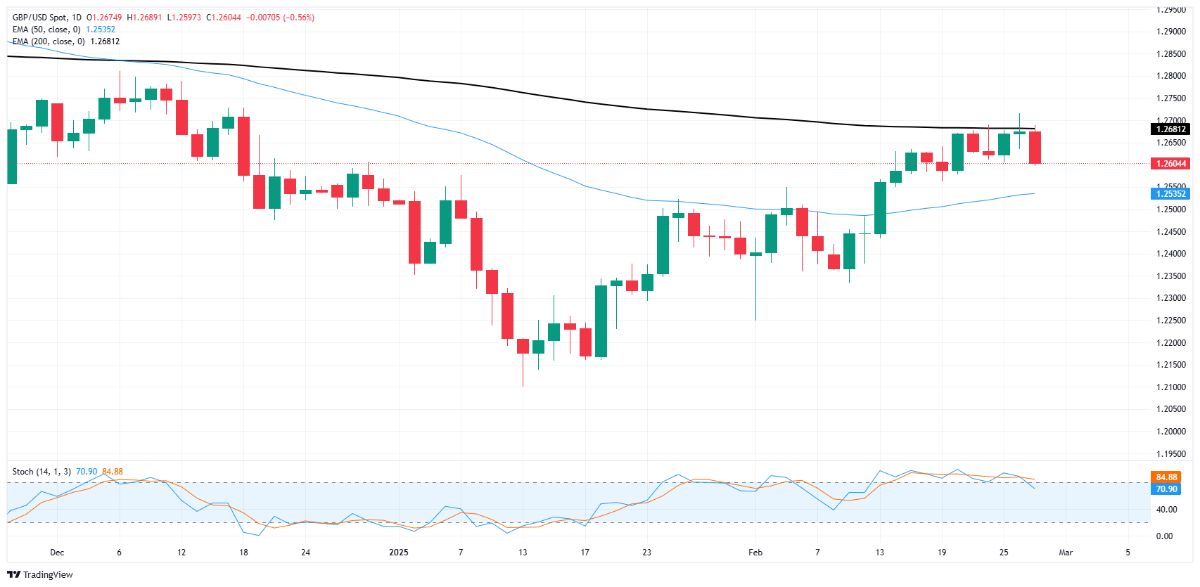 - 英镑/美元周四下跌0.56%,跌至1.2600。