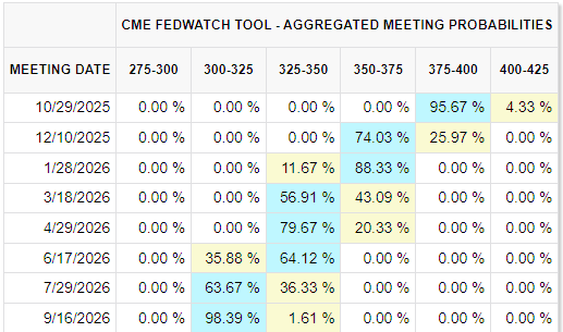 根据CME的FedWatch工具,利率交易者预计10月29日将有95%的可能性进行后续降息。然而,第三次降息的前景仍不明朗:侭管利率市场认為12月有近75%的可能性进行第三次降息,但许多投资者对这一前景持谨慎态度,并预计美联储可能在12月维持利率不变,然后在1月进行第三次降息。