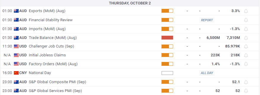 • 澳大利亚贸易平衡数据将于周四早些时候公布。