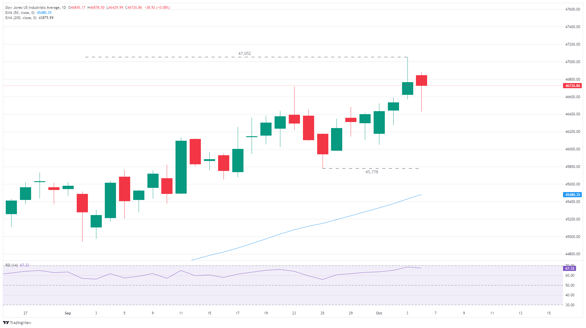 美联储(Fed)仍然坚定地计划在10月29日进行后续降息,保持股市的强劲需求,因為降息仍然是股票交易者关注的关键点。由于美国政府持续的停摆,关键经济数据点已被暂停或推迟,这一停摆已延续至第二周。在缺乏最新的非农就业报告(NFP)的情况下,投资者假设美联储将被迫根据当前可用数据做出利率决策,这倾向于更多的降息。