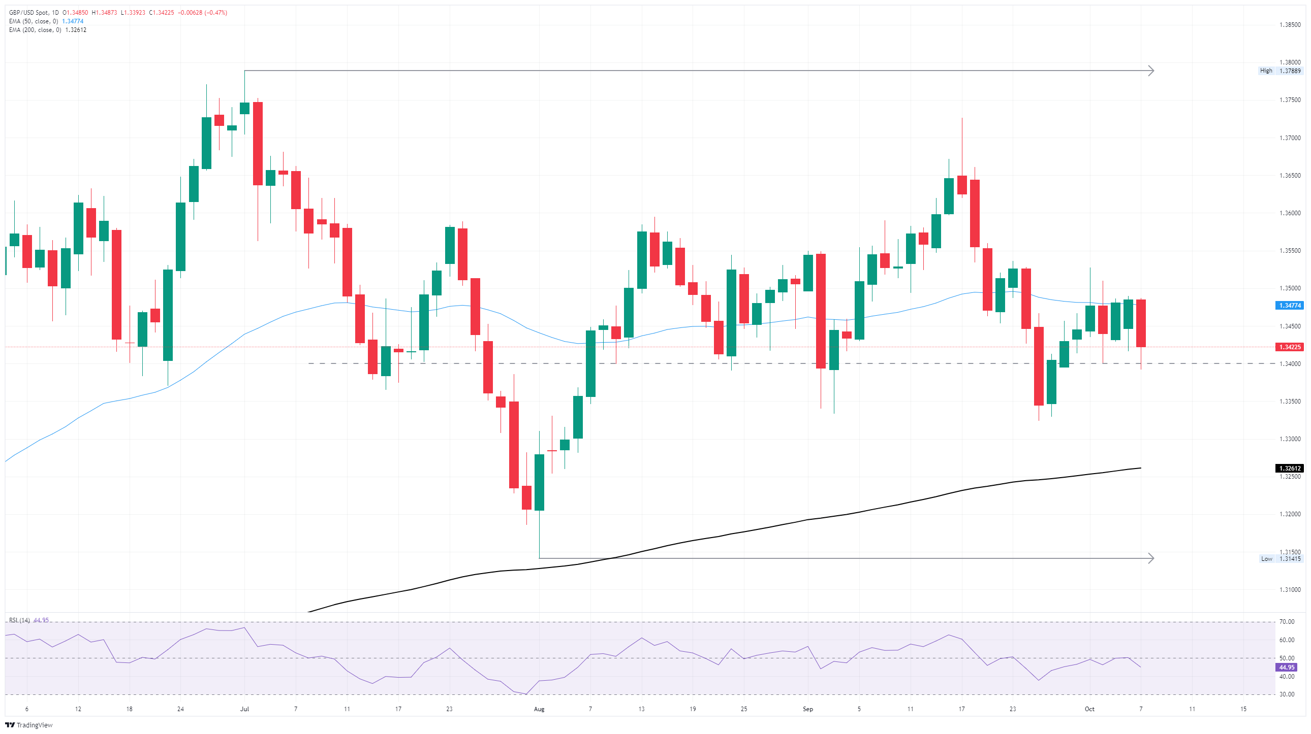 英镑/美元在1.34价格底部挣扎,交易者静候美联储会议纪要