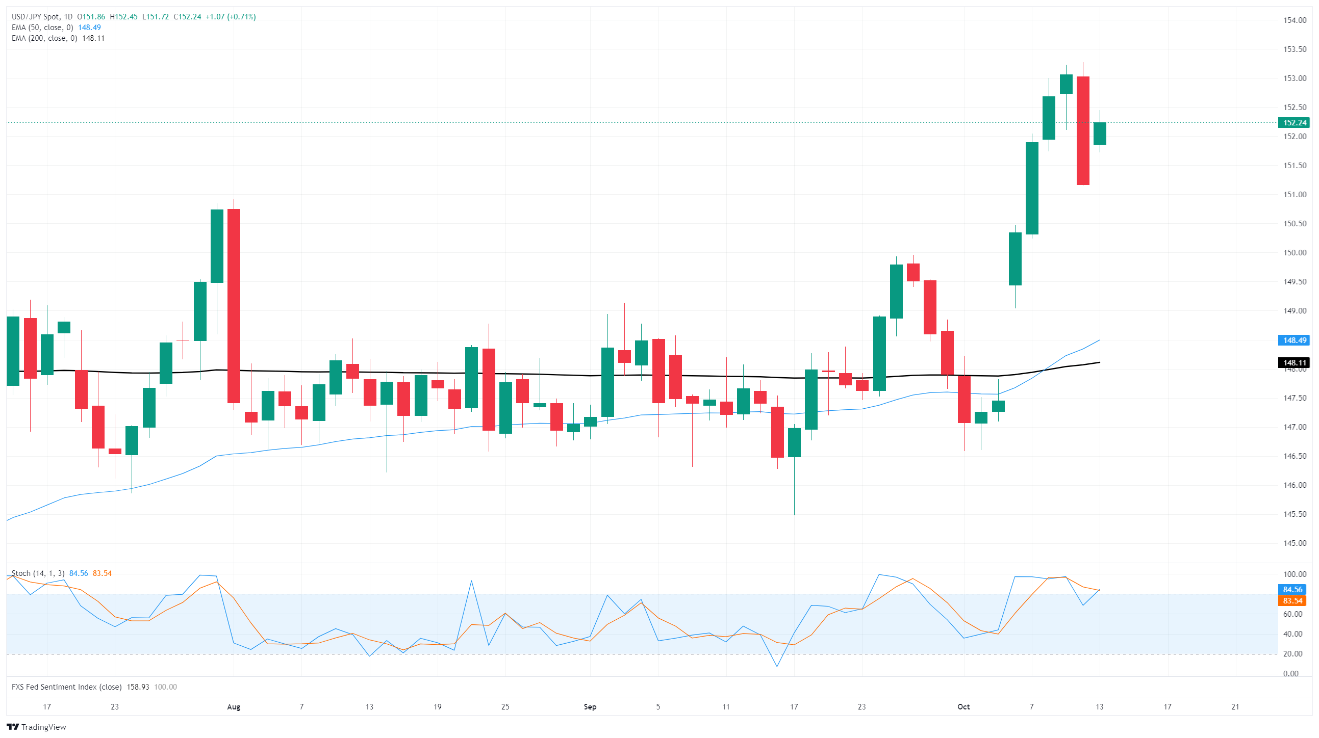 • 美元/日元在上周末大幅下跌后反弹至152.00以上。