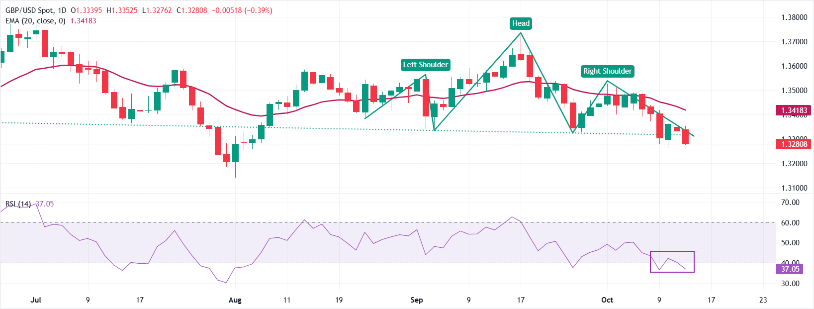 技术分析:英镑在相对强弱指数(RSI)保持在40.00以下的情况下,面临更多下行压力