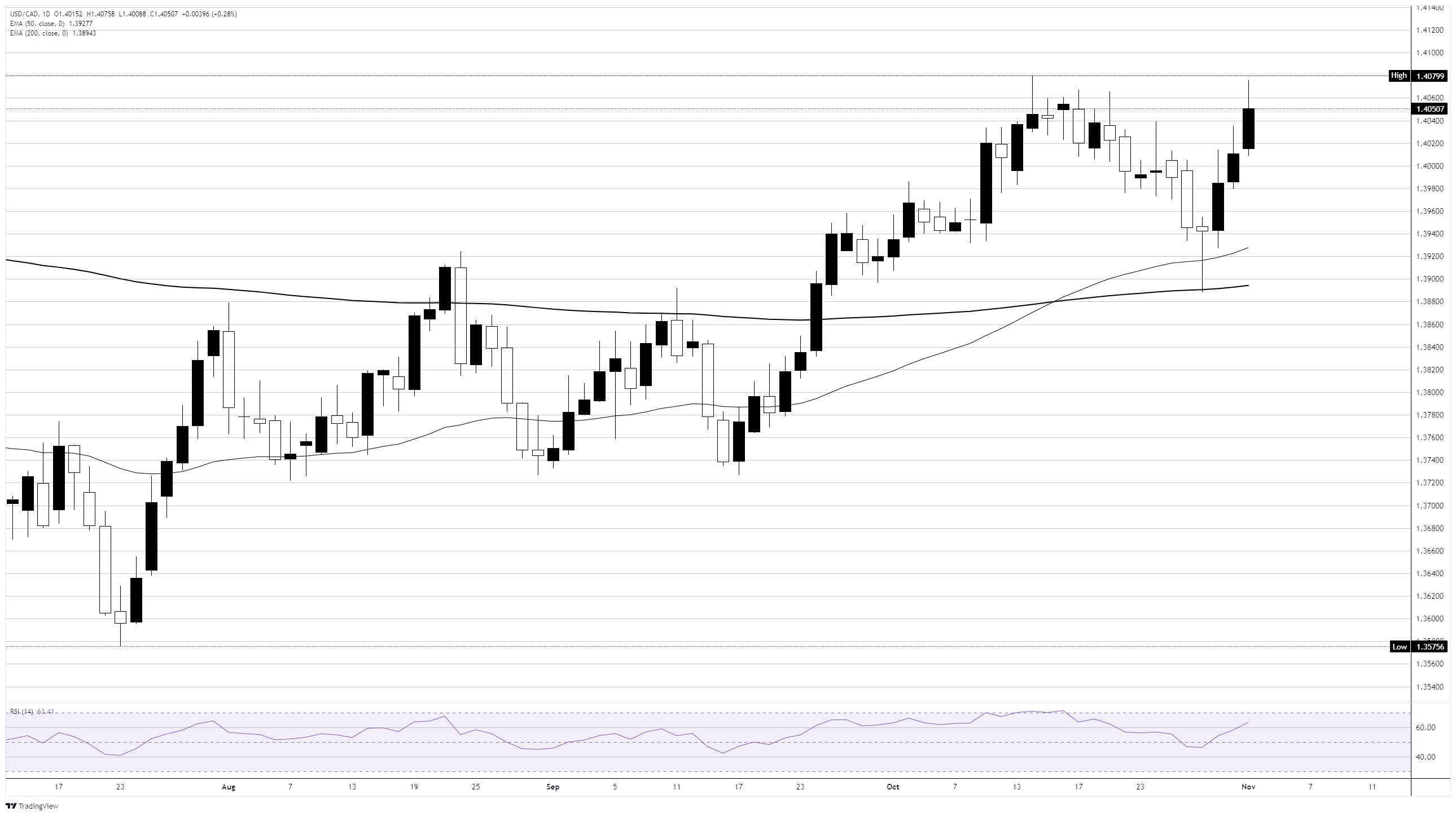 - 美元/加元已回升至1.4050区域,并准备再次挑𢧐七个月高点,因為加元继续对美元走弱。