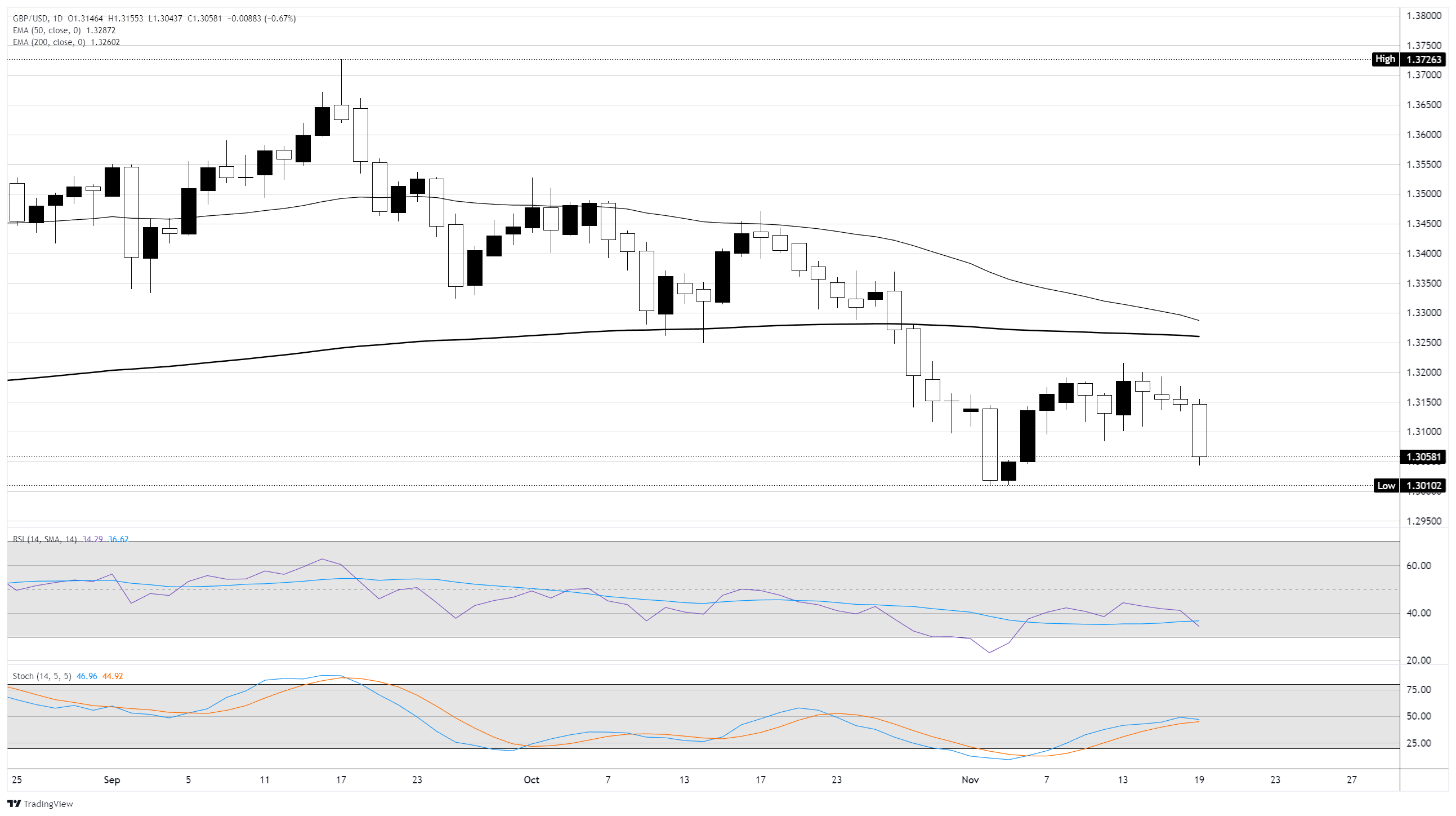 • 英镑/美元周三下跌约0.67%。