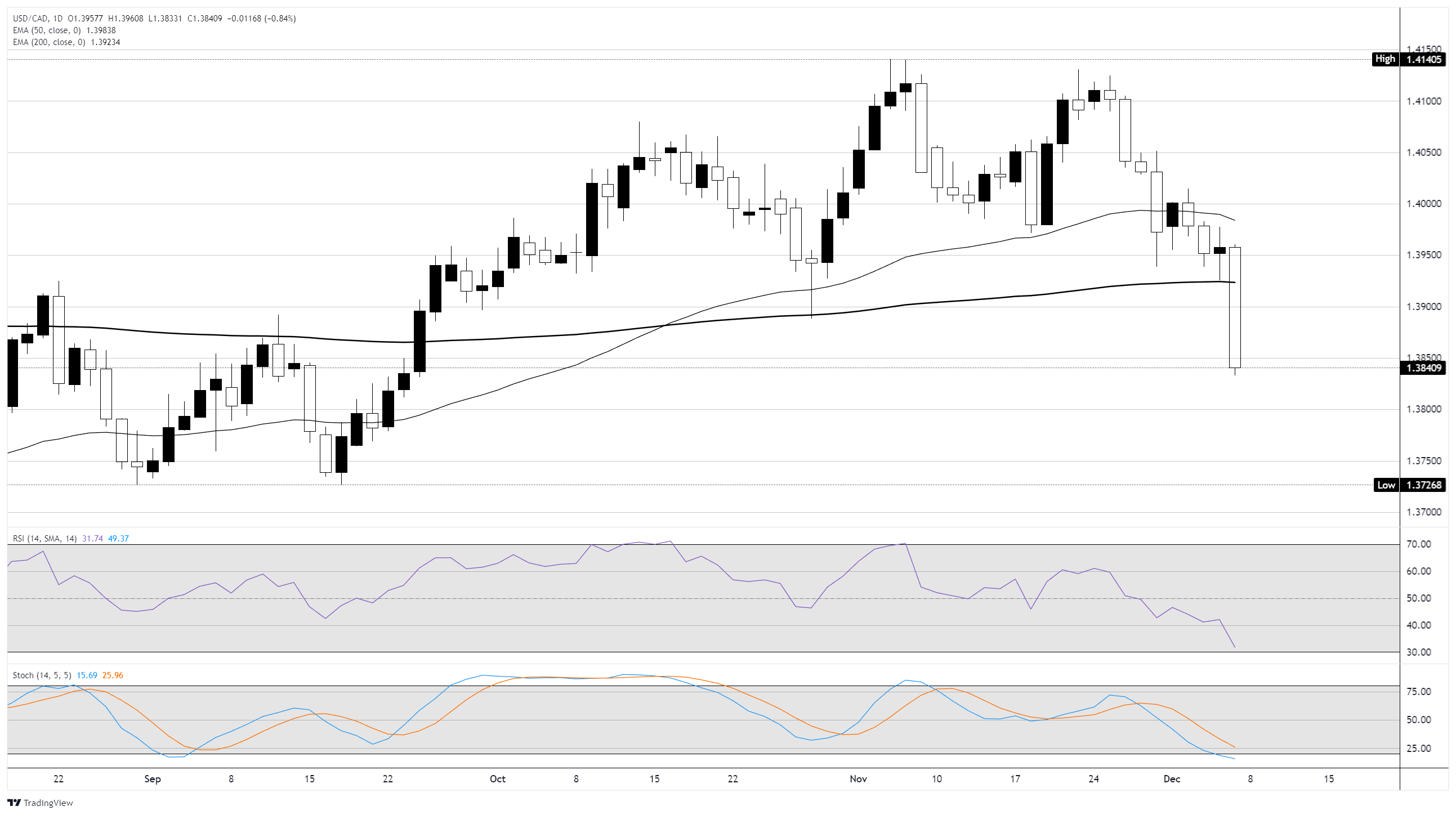 周五加元的强劲表现使得美元/加元进一步进入看跌区域。价格走势现在位于200日EMA的低位。侭管技术振盪器𫔭始发出超卖条件的警告信号,但在市场情绪没有结构性转变的情况下,回归均值的看涨回升不太可能重新夺回1.4000。