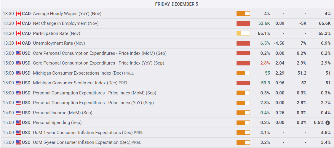 • 11月加拿大就业净变化显示新增53.6K个就业岗位,远高于预期的5K的收缩。