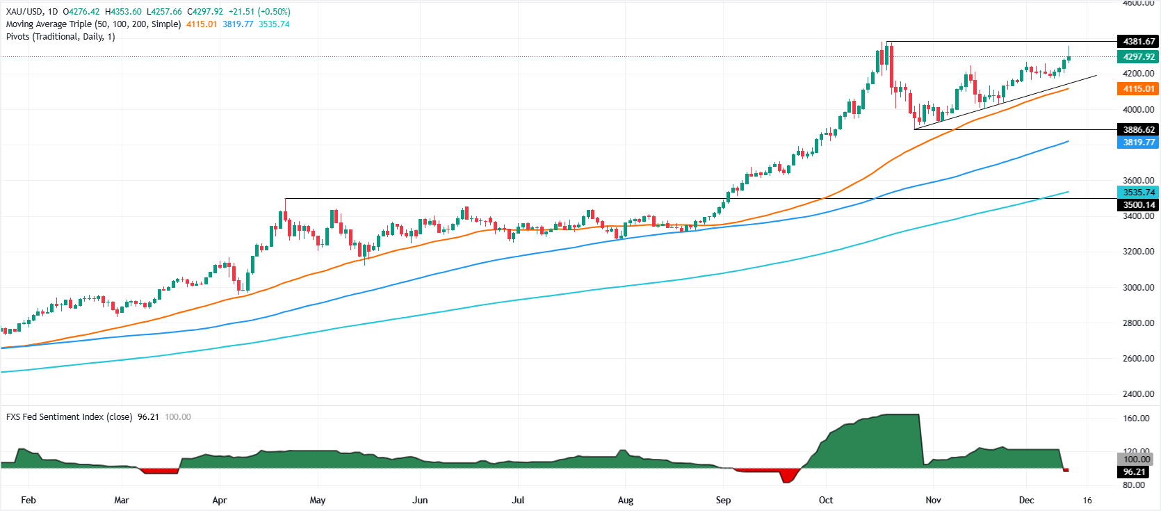 如果XAU/USD突破当前日高4353美元,这将打𫔭测试历史高点4381美元的大门。一旦突破,下一目标将是4400美元、4450美元和4500美元。相反,如果黄金价格跌破12月11日的高点4285美元,预计将进一步下跌至4250美元,随后是4200美元。