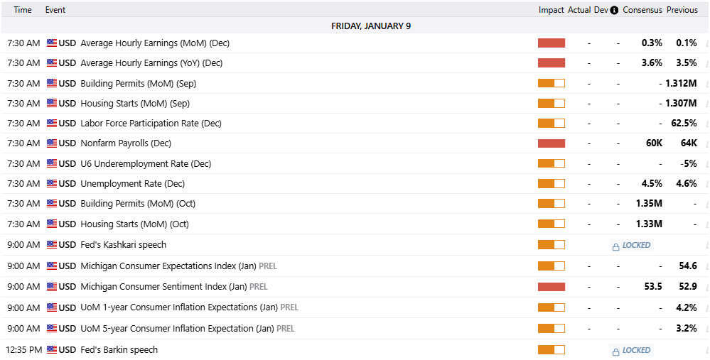周五,交易者将关注非农就业数据,预计经济在12月新增6万个就业岗位,低于11月的6.4万个。失业率预计将从4.6%降至4.5%。