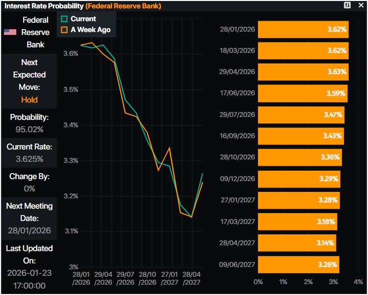 如果交易员继续削减美联储的鸽派押注,这将限制黄金的上涨,黄金年初至今(YTD)上涨15%,而白银自2026年初以来上涨39%。