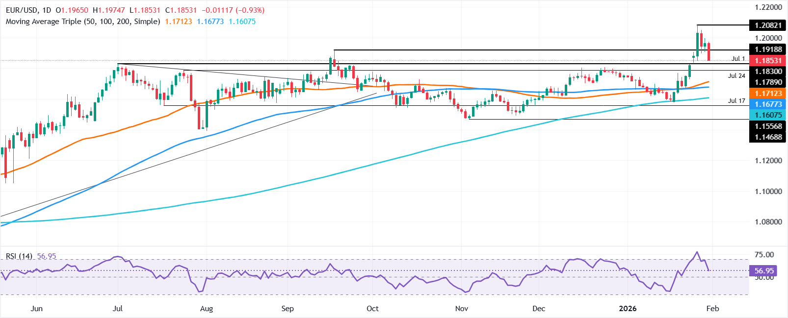 - 欧元/美元下跌0.75%,凯文·沃什的美联储提名推动美国收益率和美元需求。