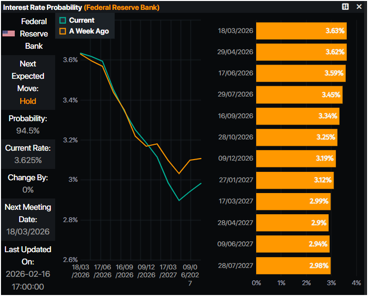 根据Prime Market Terminal的数据,货币市场预计美联储将在3月18日的会议上维持利率不变。