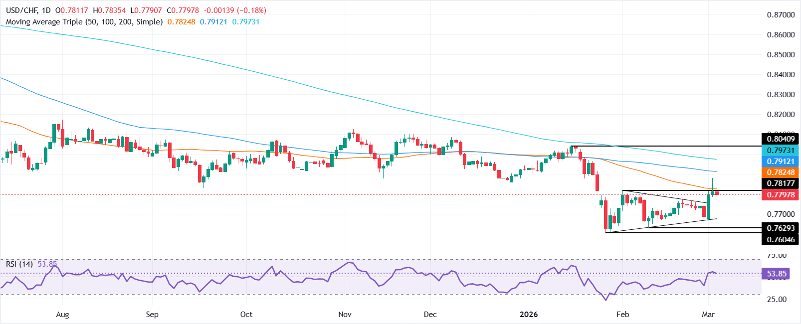美元/瑞郎价格预测:在50日均缐冲突后跌至0.7800以下