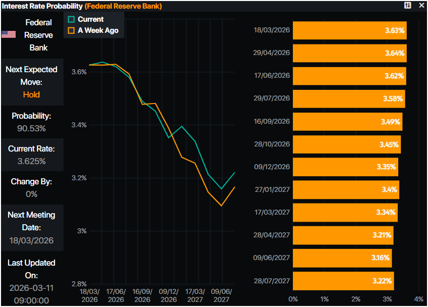 根据Prime Market Terminal的数据,货币市场已将年末降息预期定价為30个基点。