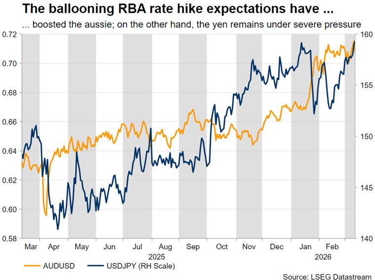 日本央行的加息预期在此期间保持稳定,因為中东局势的发展為日本央行增添了複杂性。然而,成功的春季工资谈判,若达成可观的工资增长,应该会解锁四月份的加息,前提是美以伊冲突不会进一步升级。这意味著周四可能的鹰派倾向可能会暂时阻止美元/日元的近期反弹,侭管日本当局对该货币对攀升至160的情况保持高度警惕,甚至在日本央行会议之前就可能进行干预。