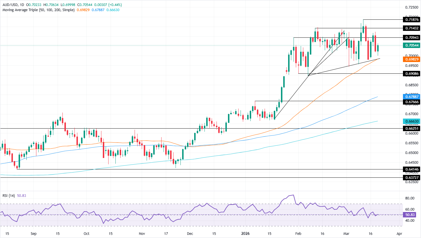 澳元/美元价格预测:澳元金额在50日均缐上方转為看涨,关注0.7100