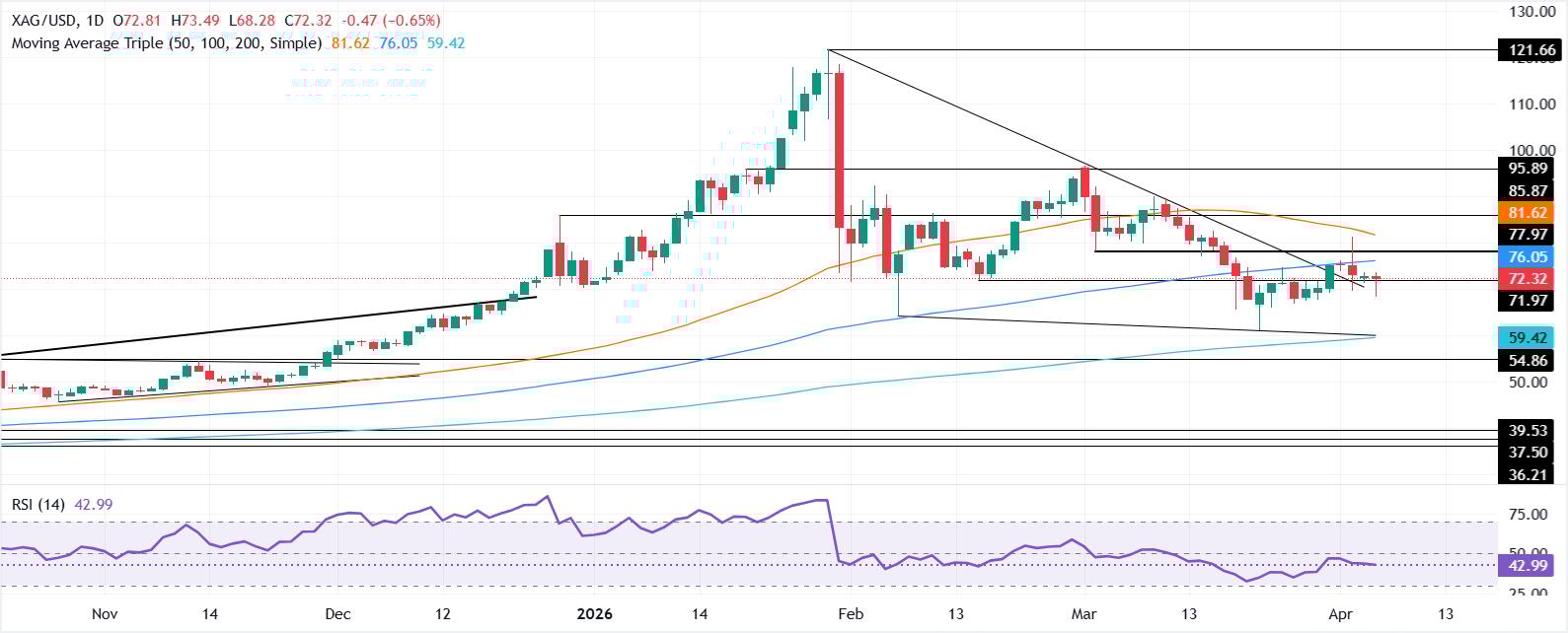 白银价格预测:看跌交叉即将出现,卖家关注70美元