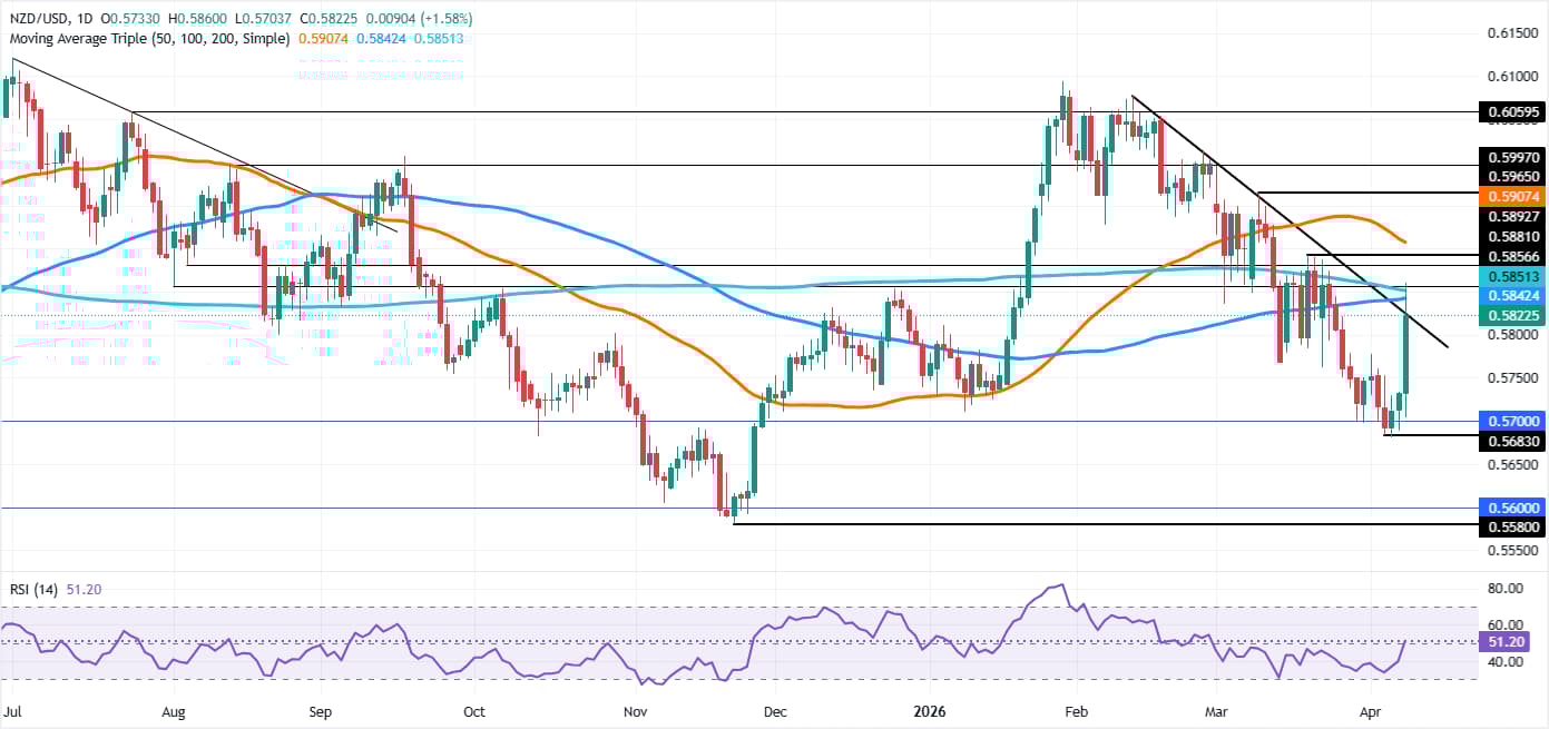 纽元/美元价格预测:涨破0.5800,关注200日均缐